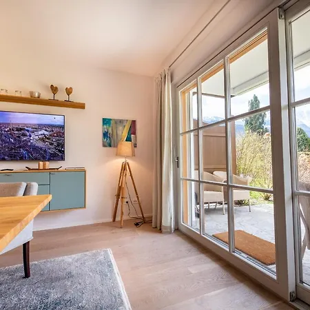 広々とした寝室1室のガルミッシュ・パルテンキルヒェンKoenigsblickアパートメントに宿泊すると、オリンピック・シャンツェから歩いて25分以内のテラスでリラックスできます。