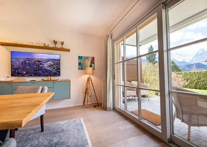 この75m²のアパートはAussichtsplattform AlpspiX数歩の距離の場所にあります。 ガルミッシュ・パルテンキルヒェンのアパートはカジノ ガルミッシュ パルテンキルヒェンから600メートル以内の距離です。 ベルリン・オリンピアシュタディオンもKoenigsblickアパートメントから歩いて30分以内の場所にあります。